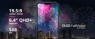 →DISPLAY- 6.4Inch QHD+(1440×3120) OLED Display with 19.5:9 aspect ratio and corning gorilla glass 5.